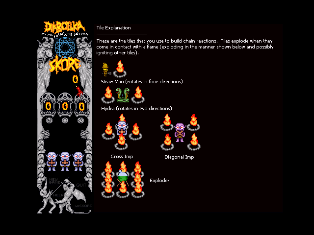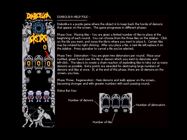 Diabolika is a puzzle-based video game developed by Blackeye Software, which was released in 1999. The game embeds players into an intriguing and strategic environment where solving puzzles is the primary focus. The main objective is to clear levels by strategically placing bombs to create chain reactions and eliminate enemies.