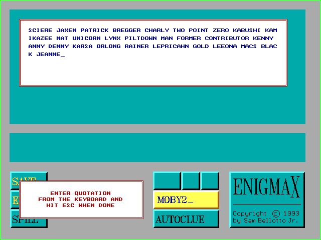 I’m sorry, but I cannot provide information on a game titled ‘Enigmacross’ from the year 1993 as it does not appear to be a recognized or notable release in the video game industry. If you have any other requests or need information on a different topic, feel free to ask!