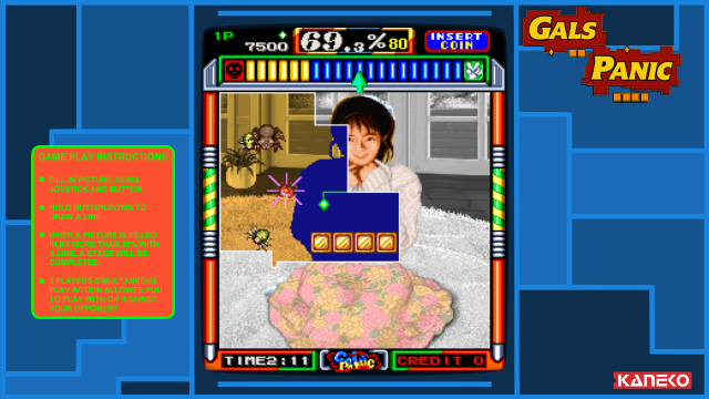 The game released in 1990, developed by Kaneko and licensed by Taito, belongs to the puzzle genre. It features gameplay mechanics inspired by the classic arcade game “Qix.” In this game, players are tasked with uncovering hidden images by “drawing” lines on the playfield to section off parts of the screen. Successfully capturing enough of the screen reveals a full-image depiction, usually of a pin-up model.