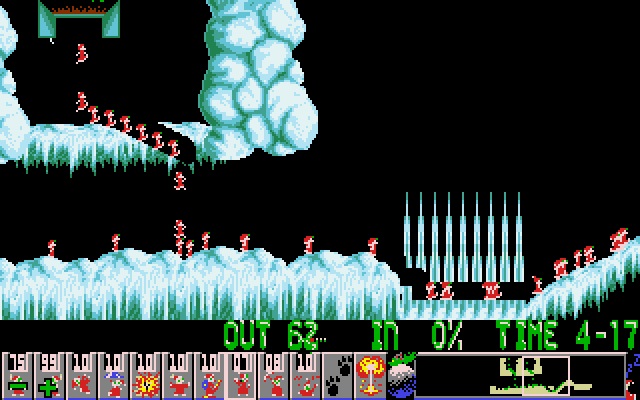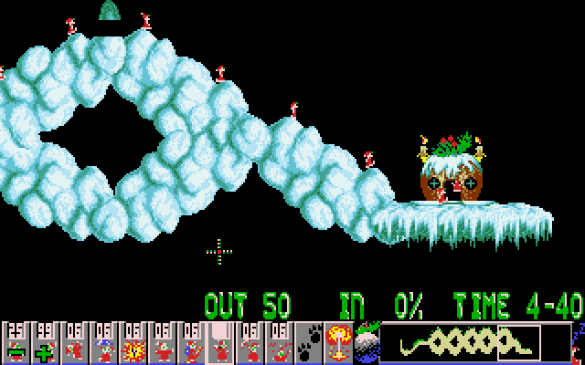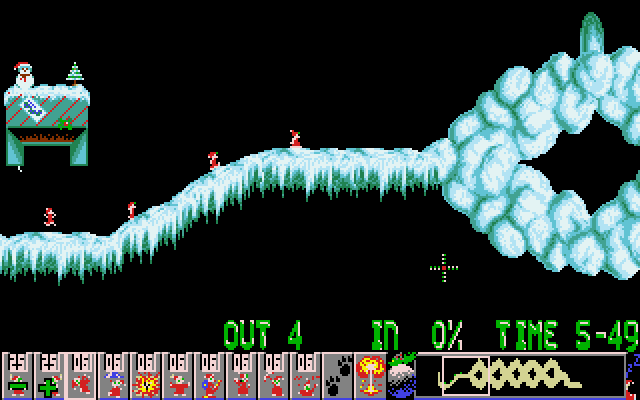 The game maintains the classic Lemmings formula where players must lead a group of lemmings from the entrance to the exit, overcoming obstacles by assigning them specific tasks such as digging, building, or blocking. This installment consists of a collection of new and challenging levels adorned with snowy landscapes and jolly music, enhancing the festive atmosphere.