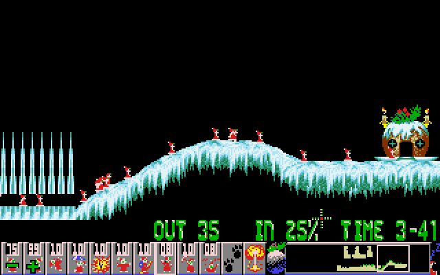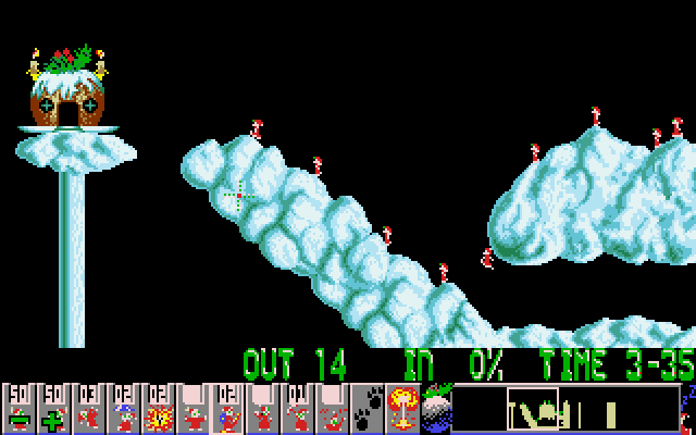 - Classic Lemmings gameplay with a festive twist.
