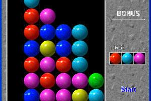 The game offers a simple yet addictive gameplay mechanic where players rotate and position falling sequences of colored beads. By matching beads of the same color in lines, players can clear sections of the grid while earning points. The challenge intensifies as the pace increases, requiring faster decision-making to prevent the grid from filling up completely.