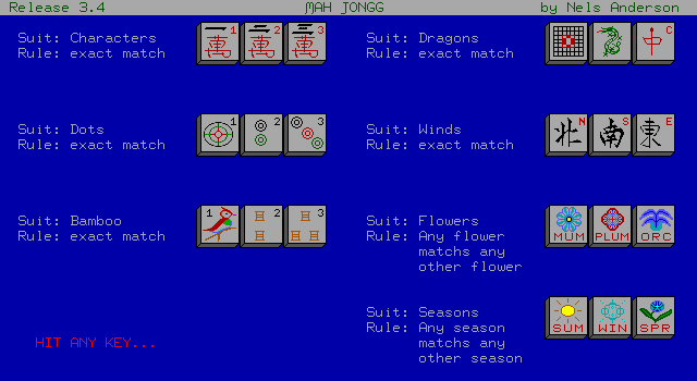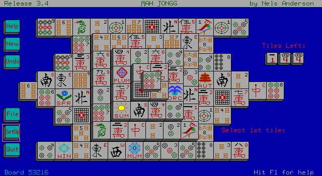 ‘Mah Jongg Solitaire’ is a single-player puzzle game developed by Arcanum Computing and released in 1987. It offers an engaging digital version of the traditional Chinese game Mahjong, specifically focusing on the solitaire variant.