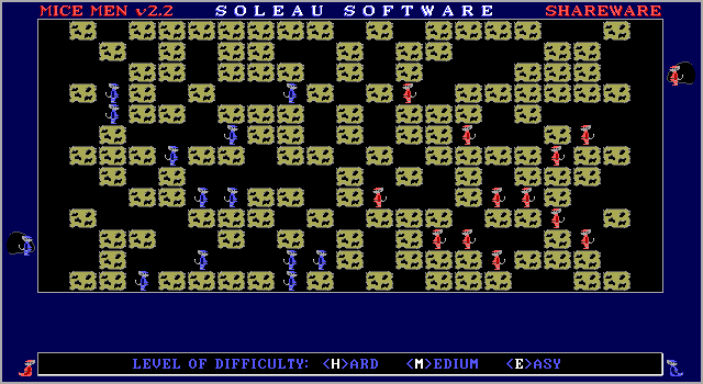 Mice Men is a puzzle video game developed and published by Soleau Software, Inc. in 1992. The game was released for DOS and embodies simplicity in its design yet offers challenging gameplay. It is perfect for those who enjoy strategy and problem-solving.