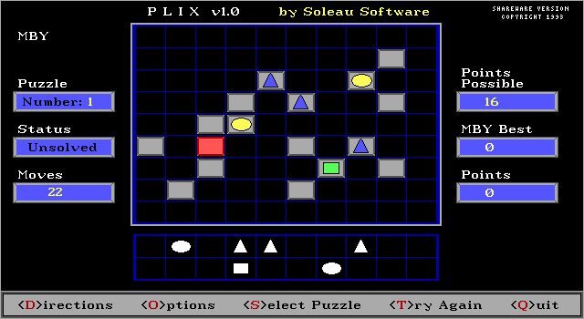 Released in 1993 by Soleau Software, Inc., this game offers a puzzle-solving experience typical of the early ’90s PC games. It is constructed around a set of strategic challenges that test the player’s ability to manipulate and organize pieces in a specific pattern or order. As with many games of its era, the focus is on enhancing cognitive skills and providing entertainment through logic-based gameplay.