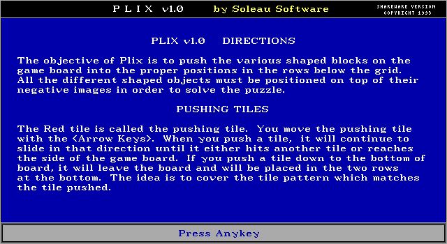 The early 1990s were a vibrant period for puzzle games, with PCs becoming more common in households. This game was developed at a time when shareware was a popular distribution method for small and independent software developers, allowing them to showcase their creativity to a broader audience. Soleau Software, Inc. was known for creating a variety of educational and puzzle games during this era.