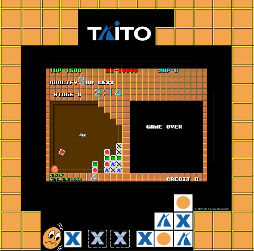 Released in 1990, this arcade puzzle video game was developed by Taito Corporation. It offers players an engaging and strategic gameplay experience, characterized by arranging colored blocks to clear them from the screen.