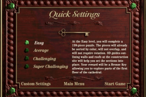 The primary gameplay revolves around piecing together various segments of the cathedral in a virtual space. The user interface is intuitive, providing tools to rotate and fit pieces seamlessly. The game is designed to simulate the tactile satisfaction of manipulating physical puzzle pieces, enhanced by the convenience and precision of digital controls.