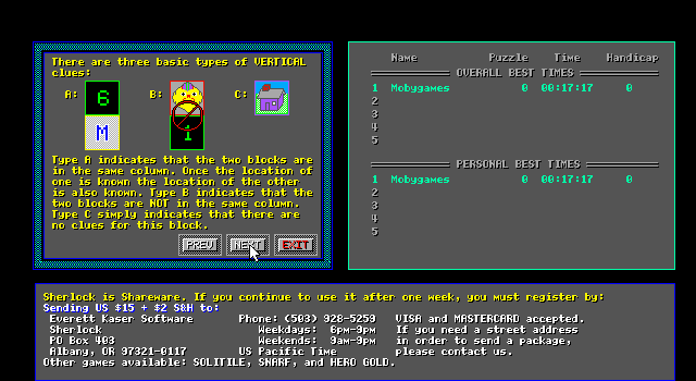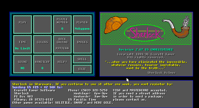 Released in 1991, this puzzle video game was developed by Everett Kaser Software. It is a logic-based game that challenges players to solve mysteries by deducing the correct placement of items on a grid. The game borrows thematic elements from detective stories, adding an engaging narrative layer to its puzzles.