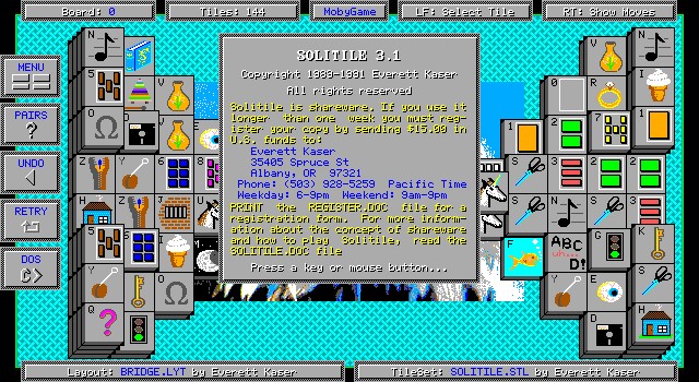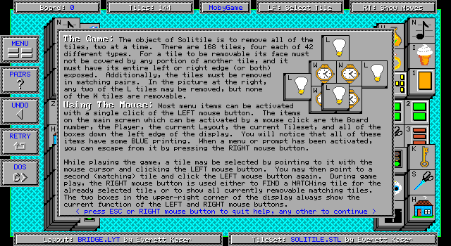 Released in 1991, Solitile is a puzzle video game that offers a unique twist on the solitaire and mahjongg genres. It combines elements of tile matching and strategic planning, challenging players to clear the board by finding and matching identical tiles. The game is characterized by its simple mechanics yet offers depth and complexity in gameplay.