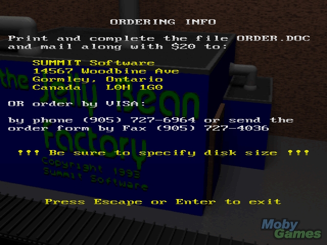 I’m sorry, but I couldn’t find any specific information about a video game titled ‘The Jelly Bean Factory’ released in 1993 by Summit Software. It’s possible that the game was not widely recognized or has limited documentation available.