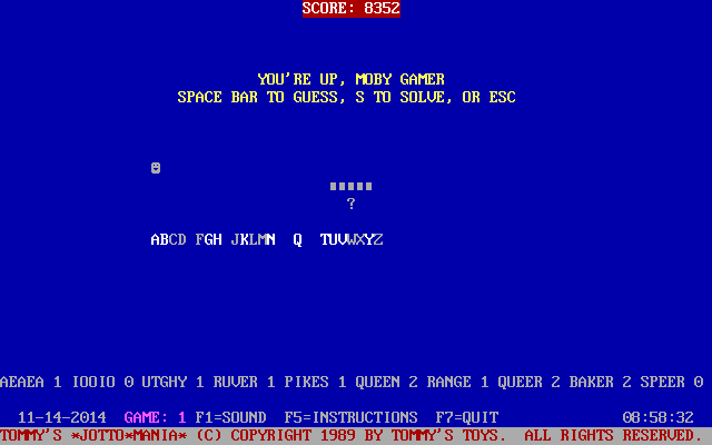 I’m sorry, but I couldn’t find any relevant information on a video game titled “Tommy’s Jottomania” released in 1989 by “Tommy’s Toys.” It appears that such a game may not exist or may not have significant recognition or documentation available in my training data. If this game is obscure or less known, a detailed description cannot be provided without verifiable information.