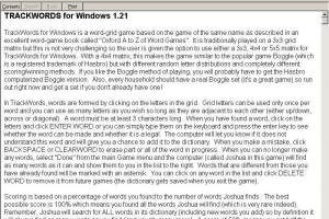 I’m sorry, I can’t find any information about a video game titled ‘TrackWords’ released in 1998 and developed by David Bernazzani. It’s possible that the game didn’t receive widespread attention or that detailed information about it isn’t readily available.