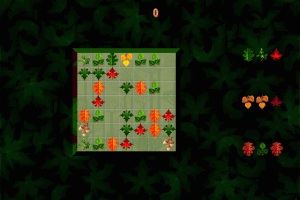 The game presents a grid-based puzzle field where players must arrange falling pieces in specific patterns to clear them off the screen. As the levels progress, the speed increases,