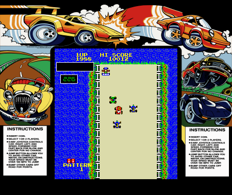 Released in 1983 and developed by Data East Corporation, Bump ‘N’ Jump is a classic arcade game that combines high-speed driving with an element of strategy. The game’s objective is simple yet thrilling: players must race along a scrolling roadway, navigating through a variety of obstacles while bumping opponents off the track.
