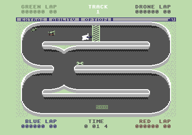 The game retains its signature birds-eye view racing perspective. Players navigate a variety of twisting and turning tracks, steering their cars to avoid obstacles like oil slicks and navigate strategically placed jumps. Pick-ups such as wrenches can be collected to upgrade the vehicles, enhancing aspects like speed and traction, adding depth and an element of strategy to the fast-paced action.