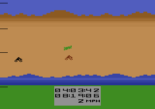 Released in 1984, this video game is a retro classic developed by Xonox. It features exciting motocross racing action that is representative of the early 1980s gaming era. Players get to control a motorbike, navigating through diverse courses filled with obstacles and challenges.