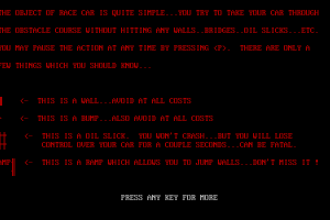 Created by William Soleau, the game reflects the technological capabilities of the late 1980s. Soleau, known for his contributions to the development of various puzzle and strategy games, utilized his skills to bring a straightforward yet engaging racing experience to players.