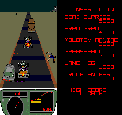 The game maintained the core concept of vehicular combat, where players used a car fitted with various weapons to take down enemy vehicles. Unlike its predecessor, this version introduced a new feature: the game allowed two players to enjoy the experience simultaneously. Each player controlled their own vehicle, working together to eliminate enemies and avoid obstacles on a vertically scrolling track.