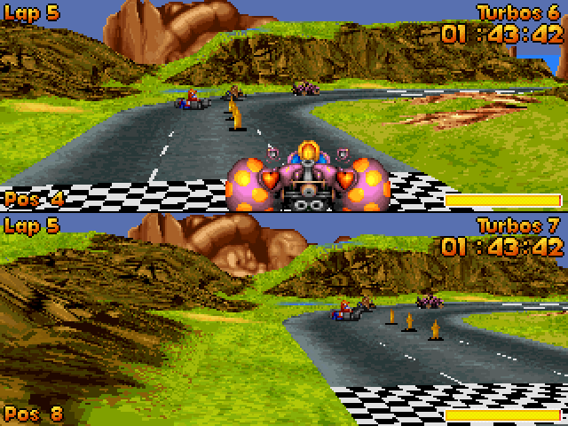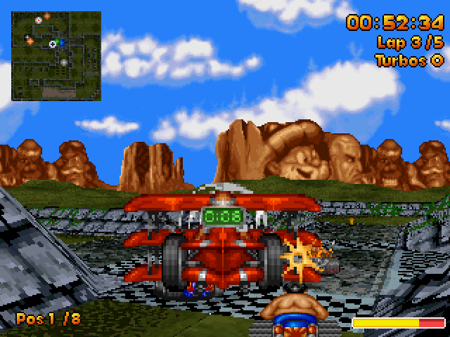 Players compete in high-speed races, navigating various tracks while utilizing power-ups and special moves to outpace opponents. The game features a variety of characters, each with unique abilities that can provide advantages on the track.