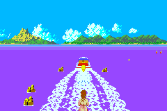 Set in a tropical paradise, players navigate through water-based challenges, making this title a unique offering of its era. The game involves controlling a character in aquatic settings, which was less common at the time, providing a refreshing break from the typical space or land-based arcade games that dominated the period.