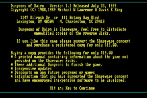 While it might not have achieved the same level of fame as other games from the same era, Dungeons of Kairn stands as a fascinating piece of gaming history for enthusiasts interested in the early evolution of the RPG genre.