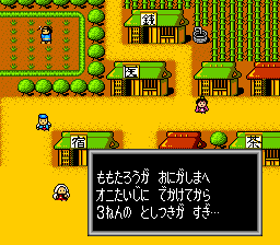 The game is a traditional role-playing game (RPG) developed by Hudson Soft, released for the Famicom in 1990. Set in a mythical world inspired by Japanese folklore, it follows a young protagonist on a quest to save lands from evil forces, drawing inspiration from the legend of MomotarÅ, a folk hero born from a peach.