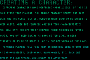 The game invites players into a mythical world where they engage in dungeon crawling, a popular theme for games of its era. Players manage a character, navigating through labyrinthine dungeons, fighting monsters, gaining experience, and collecting treasures. The game incorporates elements of strategy as players must carefully manage their resources and character stats to progress through increasingly challenging levels.