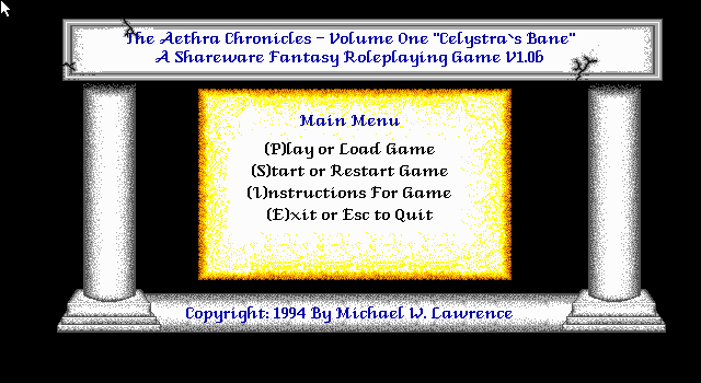 The Aethra Chronicles: Volume One – Celystra’s Bane is a classic role-playing game (RPG) released in 1994 for MS-DOS. It features a traditional turn-based combat system, intricate storytelling, and a rich fantasy world. Players navigate a complex narrative while managing a party of adventurers, each with unique skills and attributes.