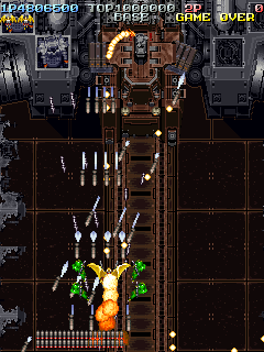 Players select from a roster of fighter aircraft, each with unique abilities and weapon upgrades. The objective is to navigate through waves of enemies and obstacle-ridden stages, utilizing both primary weapons and bombs for tactical advantage. A noteworthy mechanic is the game’s dynamic difficulty, which adjusts based on player performance, creating a consistently challenging experience.