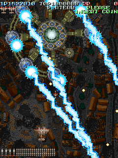 The game is well-known for its unique scoring system, which involves complex mechanics like collecting medals and chaining enemy destructions. Players must carefully navigate a plethora of enemy bullets while utilizing smart bomb attacks and power-ups to progress. The title also introduces a rank system, influencing enemy behavior and difficulty based on player performance, which encourages mastering nuanced play styles to achieve high scores.