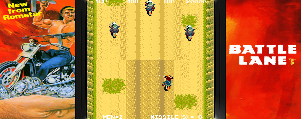 Battle Lane! Vol. 5 is a classic scrolling shooter arcade game where players control a heavily-armed motorcycle. The challenge is to navigate through dangerous streets filled with enemy vehicles and obstacles. As players advance, they can collect power-ups to enhance their firepower, making their journey through the hostile environments a thrilling ride. The objective is to survive waves of enemies and reach the end of each level.