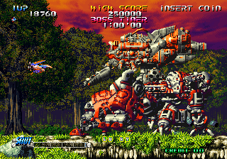 The game allows players to choose from several spacecraft, each equipped with unique abilities and weapon systems. The primary objective is to defeat waves of enemies and massive boss battles. By strategically collecting power-ups, players can enhance their firepower and gain an edge in progression. The game is known for its use of pre-rendered graphics and detailed design.