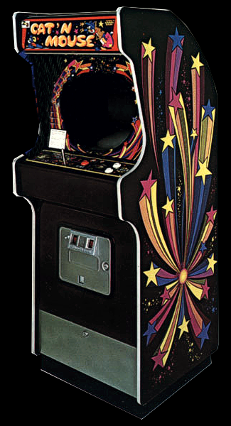 In this arcade game, players are thrust into a classic chase scenario, where they must navigate a maze-like environment. The objective is to outsmart and outrun the pursuing cats while collecting various items scattered throughout the levels. The gameplay is fast-paced, requiring quick reflexes and strategic planning to avoid capture and achieve high scores.