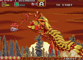 The game challenges players to navigate their spaceship through diverse stages filled with waves of enemies and formidable bosses. The distinctive feature of the game is its multi-path route system, allowing players to choose their path through the game’s stages, which offers replayability and strategic depth. The player’s ship, the Silver Hawk, is equipped with powerful weaponry and multiple power-ups that players must wisely utilize to fend off the overwhelming alien threat.