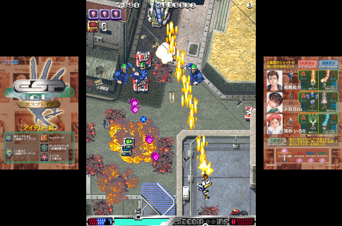 The visual design of the game is characteristic of late 90s arcade titles, featuring detailed 2D sprite artwork and vibrant backgrounds. Complemented by a high-energy soundtrack, the aesthetic elements of ESP Ra.De. enhance the immersive experience, drawing players into its futuristic world.