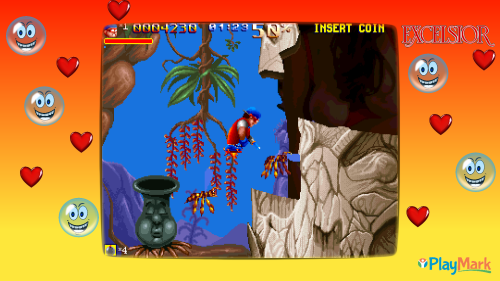 Visually, the game boasts colorful 2D graphics typical of arcade games from that era. The animations are smooth and engaging, drawing players into its dynamic environment. Complementing the visuals is an energetic soundtrack that enhances the gaming experience, keeping players enthralled as they tackle each level.
