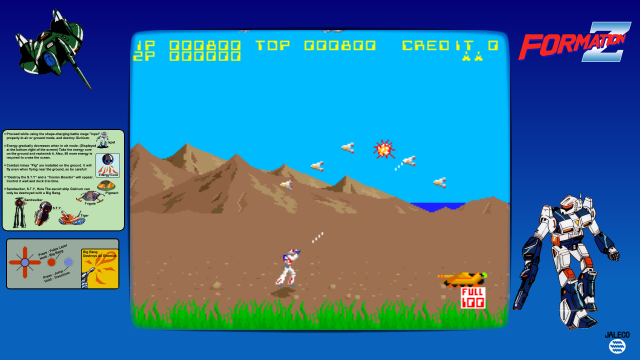 Released in 1984 by Jaleco, this game is a classic arcade title that features a unique combination of side-scrolling shooter and transformative gameplay mechanics. Players navigate a world filled with various enemies and obstacles while switching between different forms to adapt to the challenges presented.