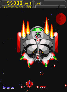 The game features a 2D side-scrolling interface, where players pilot advanced spaceships equipped with an array of powerful weapons. As pilots progress, they can upgrade their arsenal by defeating enemy bosses and collecting valuable power-ups scattered throughout the levels. Each level introduces new challenges and increasingly fierce enemies, ensuring a thrilling experience from start to finish.