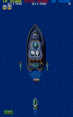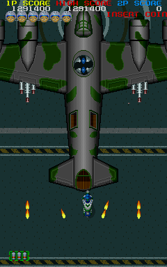Players navigate through levels wherein they control a fighter aircraft, tasked with destroying enemy forces. The game is structured with a series of progressively more difficult stages, each culminating in a boss battle. Throughout the game, players can collect power-ups to enhance their weapons and defenses, adding a strategic layer to the otherwise action-heavy gameplay. Quick reflexes and strategic planning are essential to advance through the missions successfully.