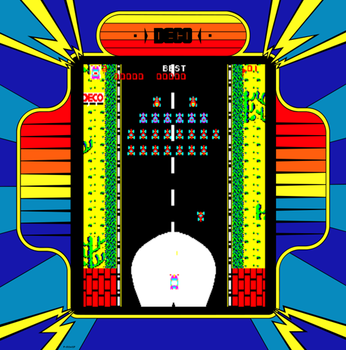 Released in 1980, this action-packed video game by the Data East Corporation transports players into a fast-paced world of high-speed chases and strategic obstacles. Set in a continuous highway environment, players navigate their vehicle to avoid traffic, dodge obstacles, and outrun pursuers.