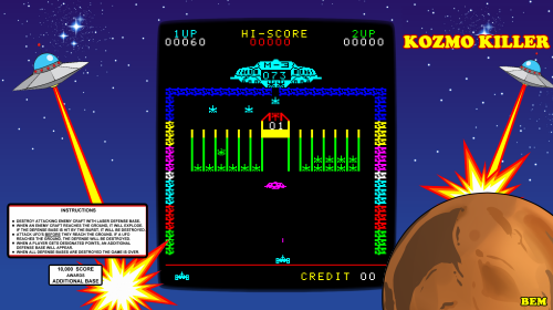 Released during a time when the video game industry was witnessing a boom in popularity, ‘Kosmo Killer’ exemplifies the trends and technological limitations of the era. Bootleg (BEM) managed to launch this title during a competitive time, contributing to the vast array of arcade games available at the time.