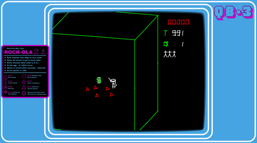 The video game released by Rock-Ola in 1982 is an arcade-style action game. Players navigate a complex series of mazes, controlling a spacecraft to avoid obstacles and enemies while collecting points and power-ups. The uniqueness of the game lies in its challenging level design and the necessity for quick reflexes and strategic thinking.