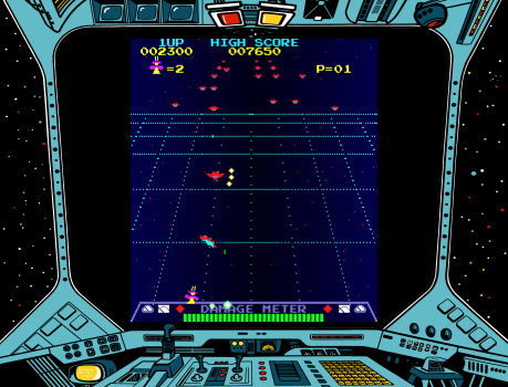 Released in 1980, this arcade game developed by Nintendo challenges players with a dynamic space shooting experience. As a space pilot, you are tasked with defending your spaceship fleet against waves of alien enemies. The game is viewed from a first-person perspective, and the primary objective is to shoot down incoming enemies before they descend and attack your ship.