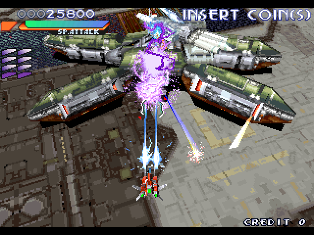 The game is a vertical-scrolling shooter that challenges players with fast-paced action and intricate level designs. Players navigate through various stages, dodging enemy fire while launching their own attacks. The gameplay combines intense aerial combat with strategic elements, providing an exhilarating experience that requires quick reflexes and strategic planning.