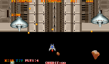 The gameplay involves maneuvering a ship through various enemy-infested stages. Players must navigate through waves of enemies, utilizing a variety of weapons to defeat adversaries and overcome obstacles. The game is known for its straightforward yet captivating action, demanding keen reflexes and strategic maneuvering.