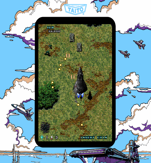 - Fast-paced vertical scrolling shooter gameplay.
