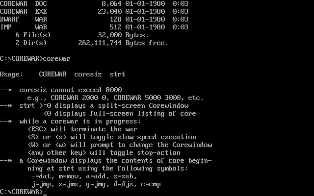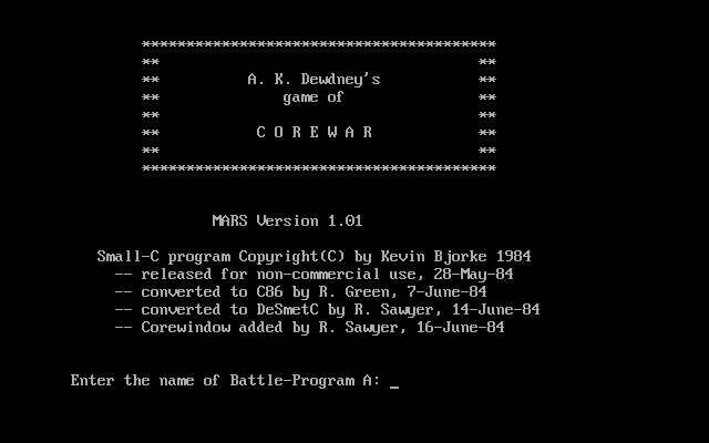 The game is set in a virtual memory space where programs, written in an assembly-like language, fight to overwrite each other’s code and cause the opponent’s program to crash. Each player creates a “warrior” program that competes to take control of the system’s memory.