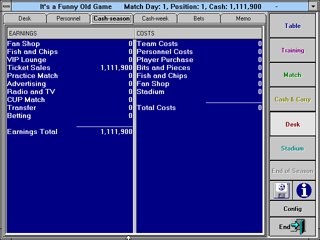 Released in 1996 and developed by Anguilla Software International Ltd., It’s a Funny Old Game invites players into the whimsical world of football management. Set in the colorful arena of international soccer, this game merges strategic planning with the unpredictable thrills of managing a football team, providing an engaging experience for both casual players and soccer enthusiasts.