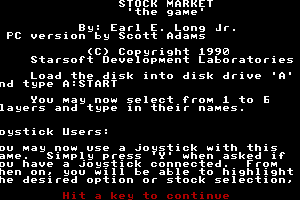 Released in 1990 and developed by Starsoft Development Laboratories, Inc., this game offers players a digital journey into the world of financial trading. Despite being set in a virtual environment, it provides an educational experience focused on the mechanics and strategies of the stock market.